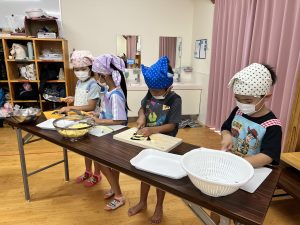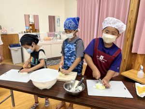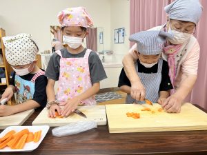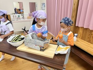 2~4年生は慣れた手つきでサクサクと皮を剥いたり、野菜を切る大きさを確認しつつ切ってくれました。