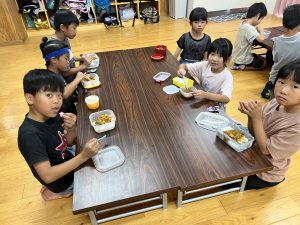 出来上がったカレーを「おいしい!」とニコニコ食べていました。