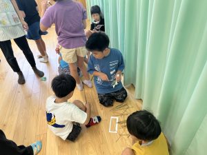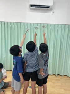 風を利用して遊ぶおもちゃなので、最後はみんなで外に出て実践!